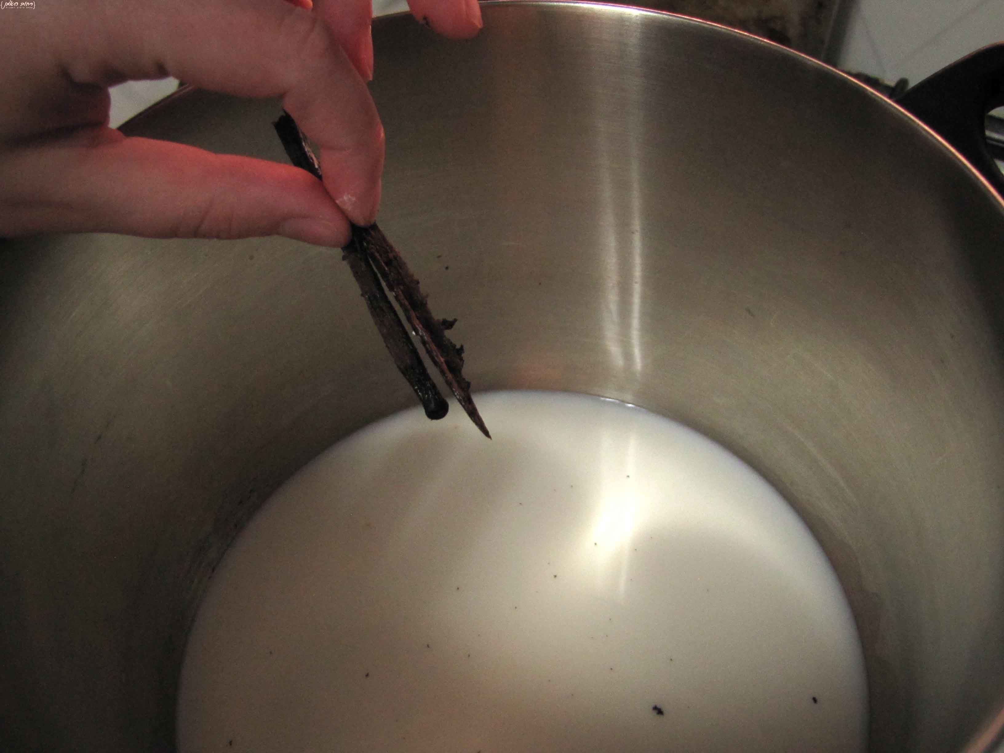 מרתיחים את החלב עם הסוכר והוניל,