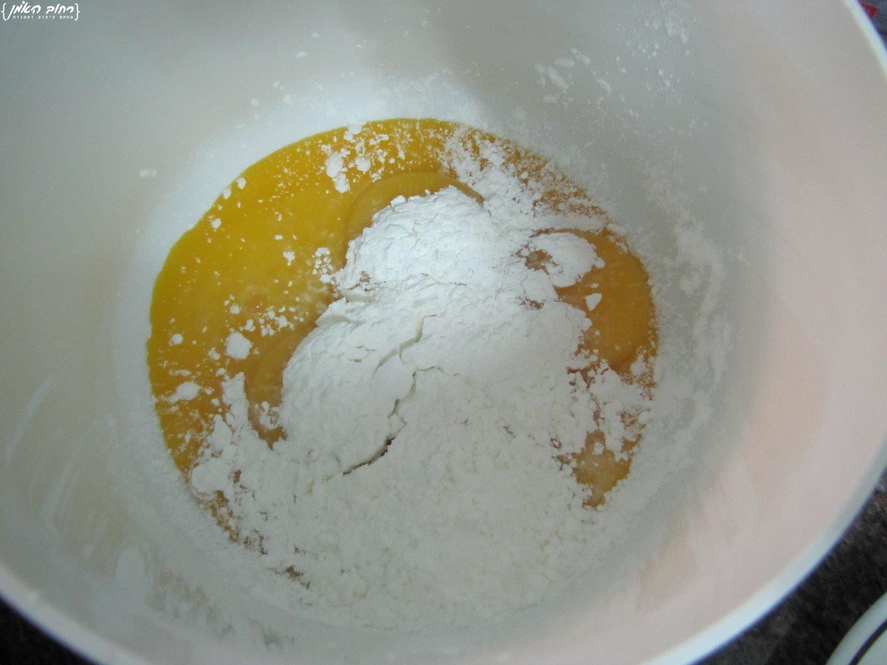 מערבבים בקערה נפרדת חלמונים וקורנפלור