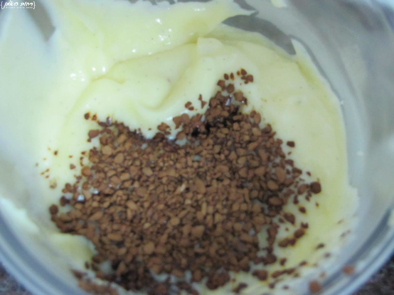 עם כפית קפה מומס בכף מים /חלב