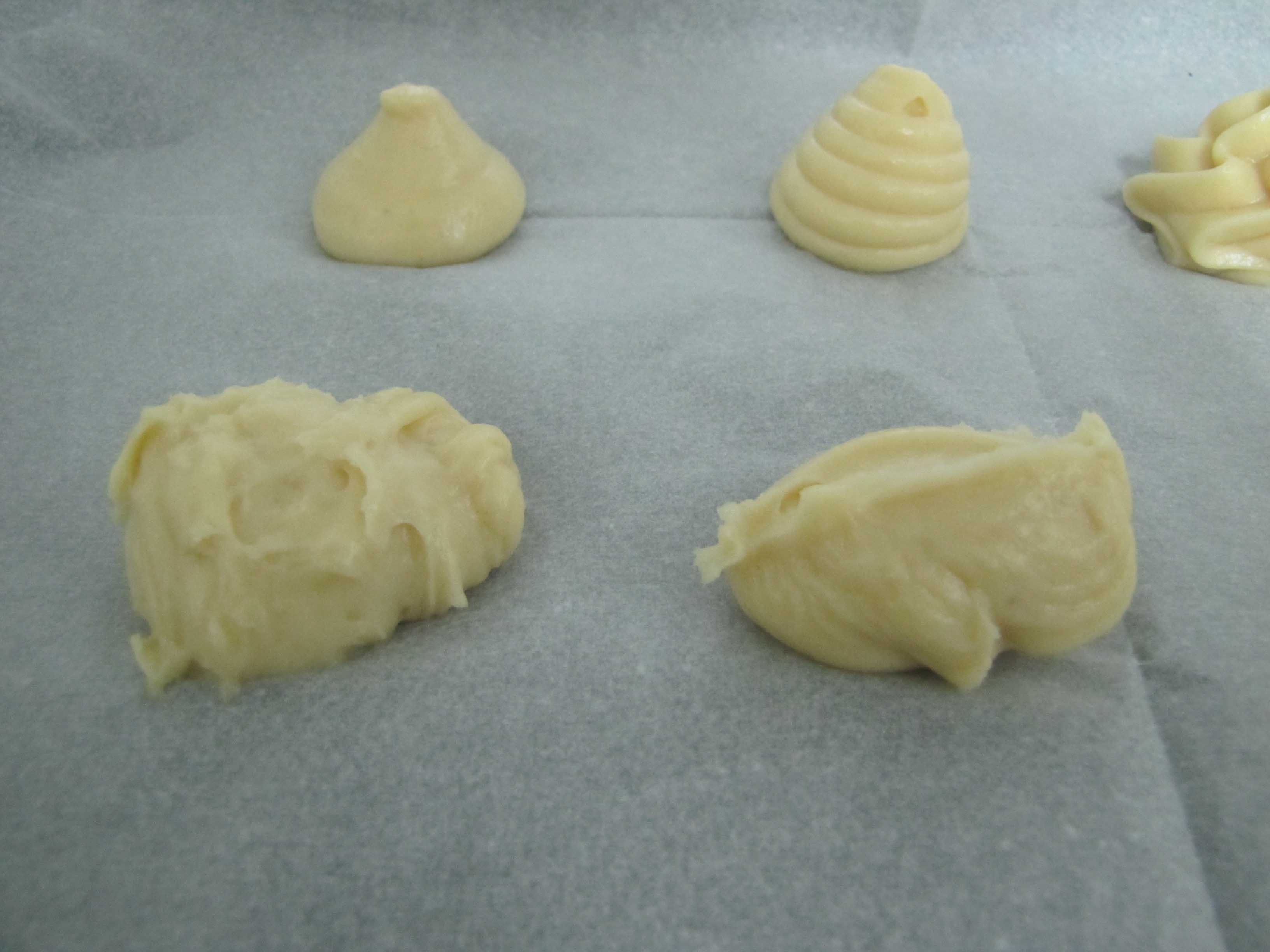 עורמים על כף אחת את הבצק ובעזרת בכך השניה מורידים אותו על נייר האפיה